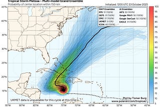 Melissa's track shifts west as models struggle, with a rising likelihood of a major hurricane impacting Jamaica, Cuba, and the Bahamas sometime next…