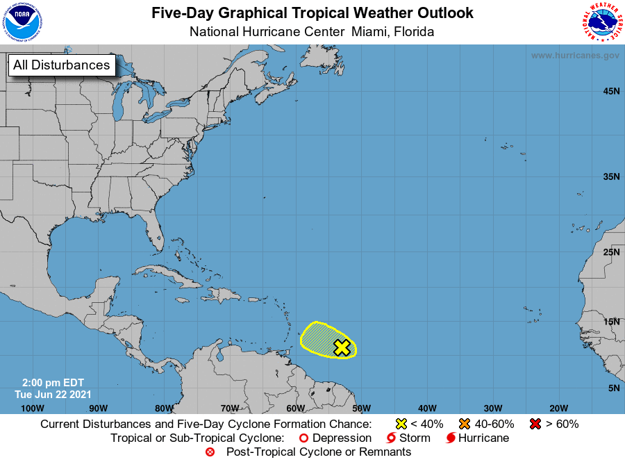Almanac: Today is Tuesday, June 22nd… day 22 of the 2021 hurricane season, 162 days to go. By total storm energy, the season is 1.8% complete as a whole, 5.1% complete for the continental U.S., and 6.3% complete for Florida. On this date in 1972, Tropical Storm Agnes made landfall near New York City with 65 mph winds. Agnes went on to become one of the most devastating flood events in the history of Pennsylvania and southern New York.