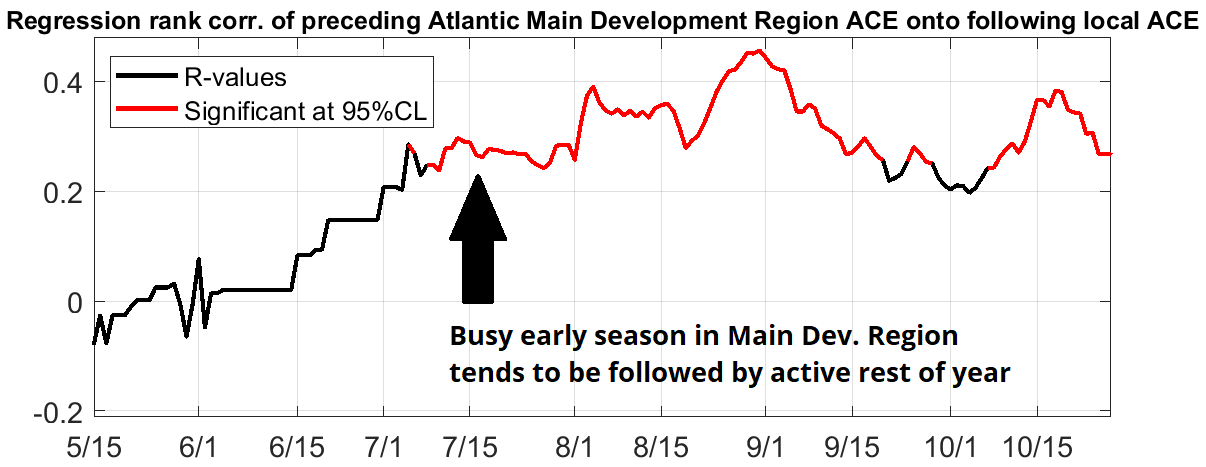 And this may not be a meaningless distinction. Years in which the Main Development Region (MDR), stretching from Central America to West Africa, is active prior to mid-July tend to remain busier than normal in the MDR for the rest of the hurricane season. While the relationship is not foolproof, the extreme warmth of the Tropical Atlantic is more likely than not to persist into August and September and give tropical waves a better chance of development in the peak season.