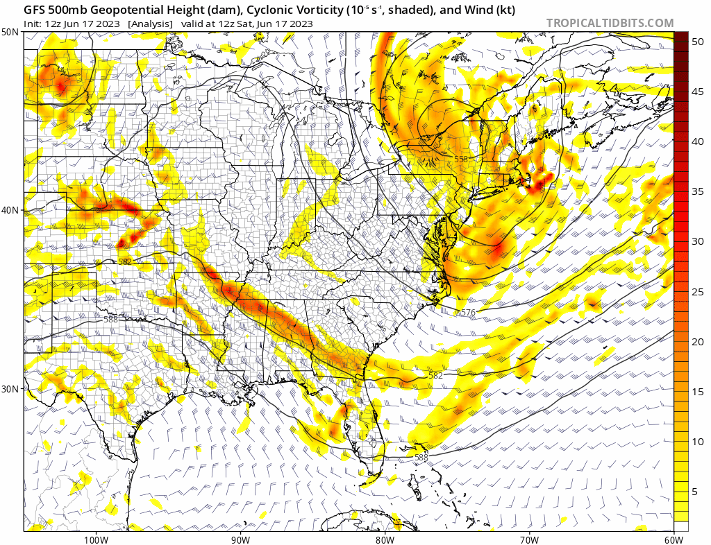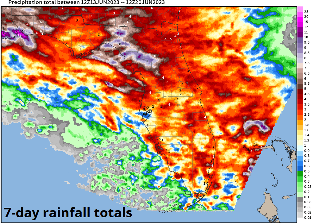 Closer to home, this bizarre, almost spring-like jet stream pattern dominated by deep cut-off lows over the eastern U.S. is causing significant weather agitation in Florida and much of the Deep South. While daily afternoon thunderstorm activity is typical in June, it’s not typical for Florida to be clocked by organized complexes of severe thunderstorms every 14 hours for 10 days.