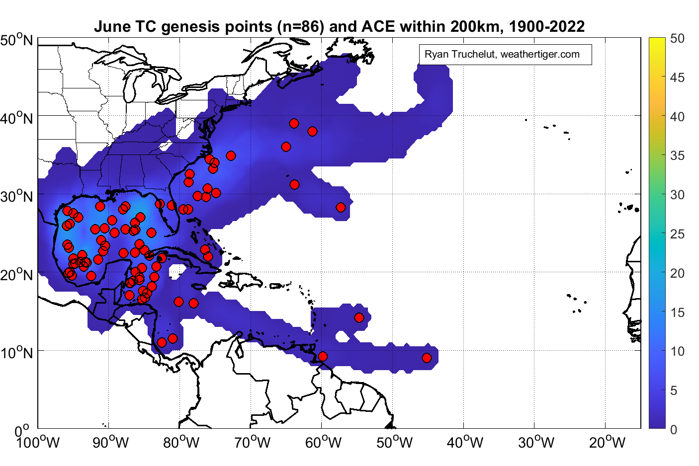 While the combined impacts of Bret and potential Cindy are expected to be minimal to modest, their very existence is an affront to hurricane climatology. Historical early-season tropical development is clustered in the western Caribbean and Gulf of Mexico, with only three cases since 1900 of a storm forming east of the Lesser Antilles in June— the Trinidad hurricane of 1933, Ana in 1979, and the 2017 iteration of Bret. Twin tropical cyclones in the eastern Atlantic in June are, well, unprecedented. Sorry.