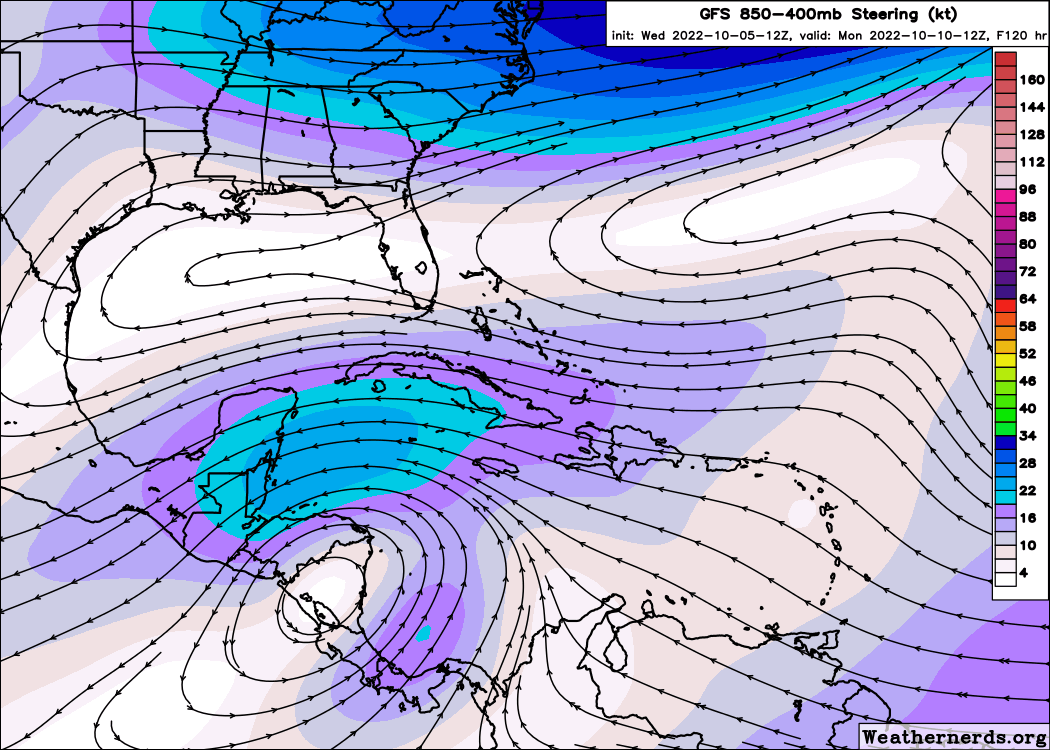 If this sounds eerily familiar, that’s because the last paragraph could also have applied to proto-Ian two weeks ago. The major difference between Invest 91L and what became Ian are the steering winds out ahead of this disturbance. While there remains a trough over the eastern U.S., unlike during Ian, the southern edge of that dip in the jet stream will not extend south to Florida by the weekend.