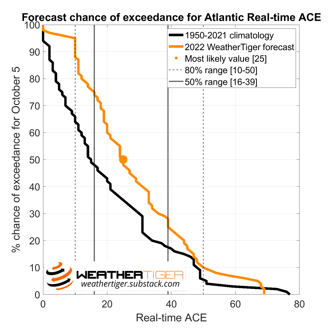 To close, Hurricane Ian shows that there are more things in heaven and earth than are dreamt of in climatology. Cataclysms without precedent can and do happen; rare, destructive events may not be as rare as we had assumed. Entering the final 20% of hurricane season, getting through each week significantly improves the odds Florida can escape the year without additional punishment, but the season is far from over. Keep watching the skies.