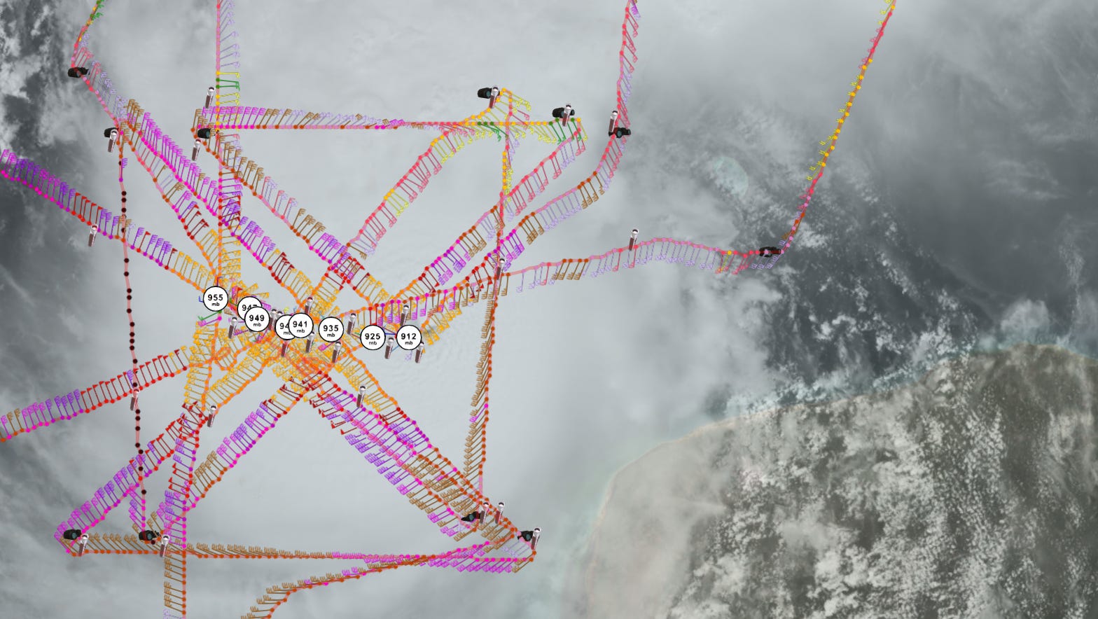 As of 2 p.m. Monday afternoon, Milton is located about 700 miles west-southwest of Tampa. Hurricane Hunter aircraft investigating the storm today have borne witness to an intensification streak with only a handful of recorded parallels anywhere in the world, as maximum sustained winds rose from Category 2 strength early Monday morning to a Category 5 by noon. Aircraft observations currently support sustained winds of an astonishing 175 mph, and pressure is still dropping like a rock. Milton should remain a Category 5 hurricane through Tuesday and may attempt to break records for strongest Atlantic hurricane ever. Given the clear, tiny eye, continuous eyewall lightning, and fearful symmetry of the central convection, it is plausible.