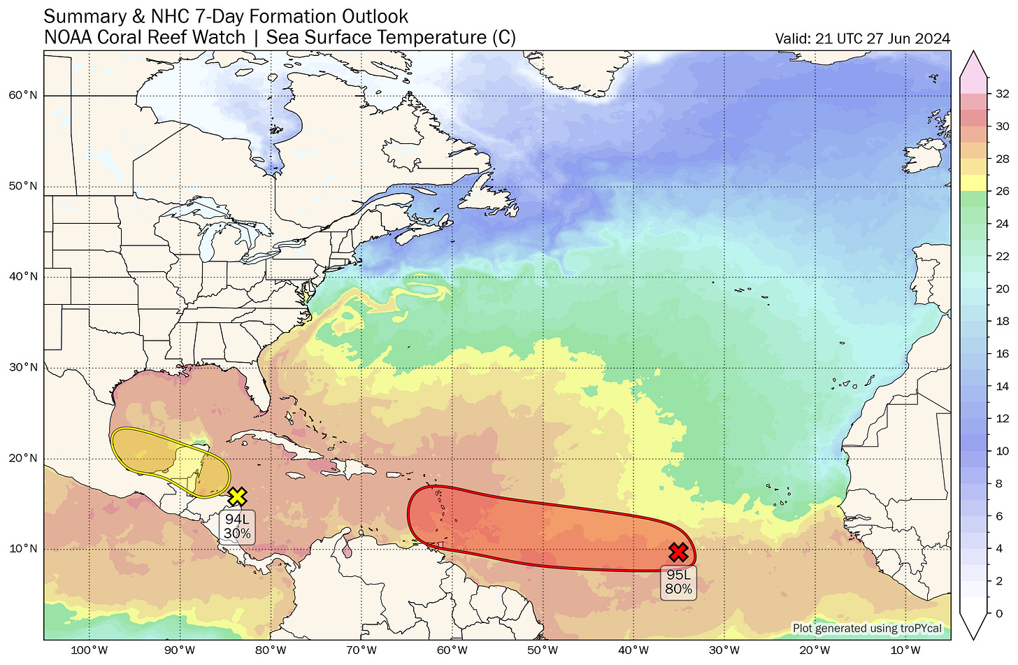 Almanac: It’s Thursday, June 27th… day 27 of the 2024 hurricane season, 156 days to go. By total storm energy, the season is 2.3%, 6.3%, and 6.3% complete for the Atlantic, continental U.S., and Florida, respectively.