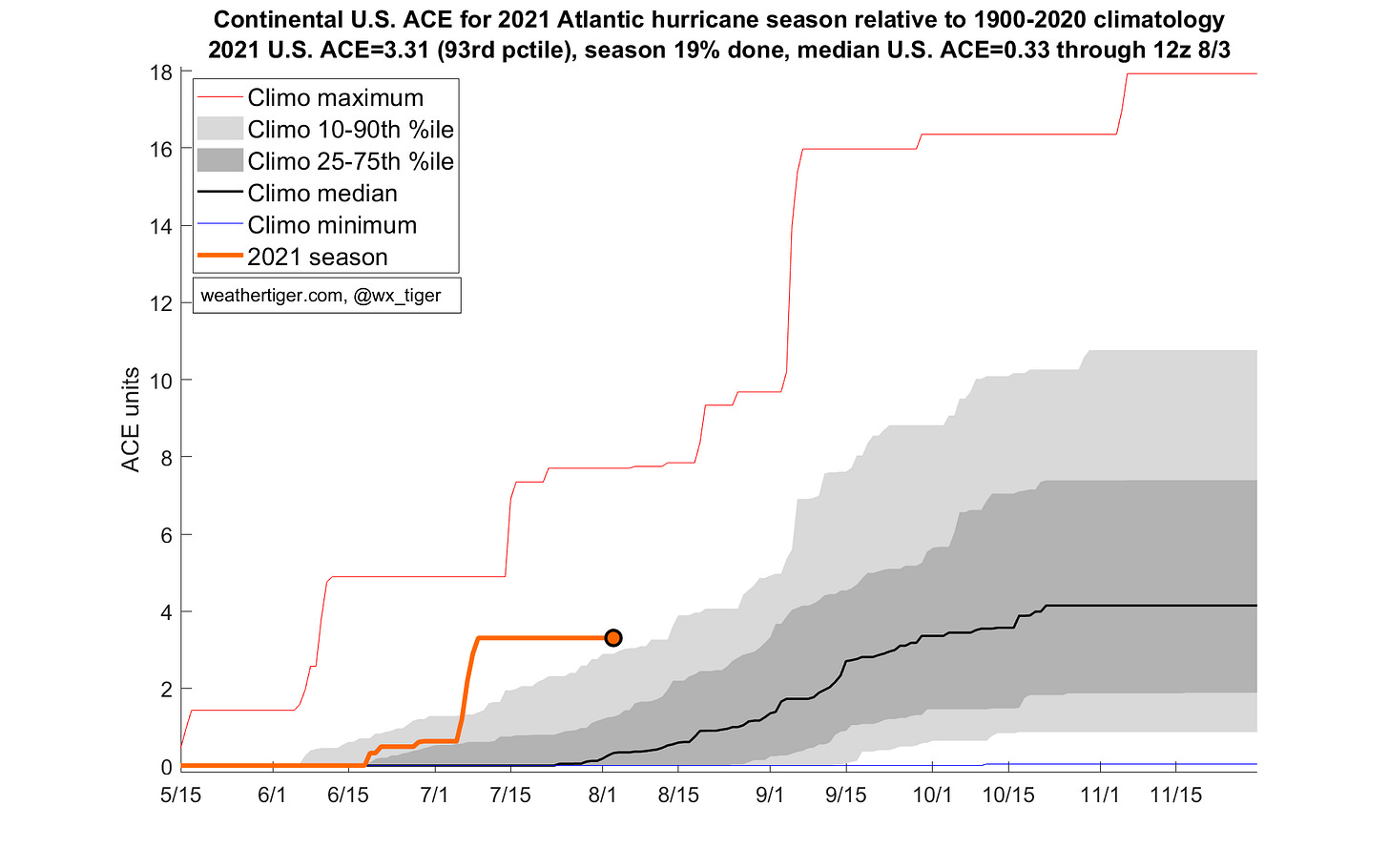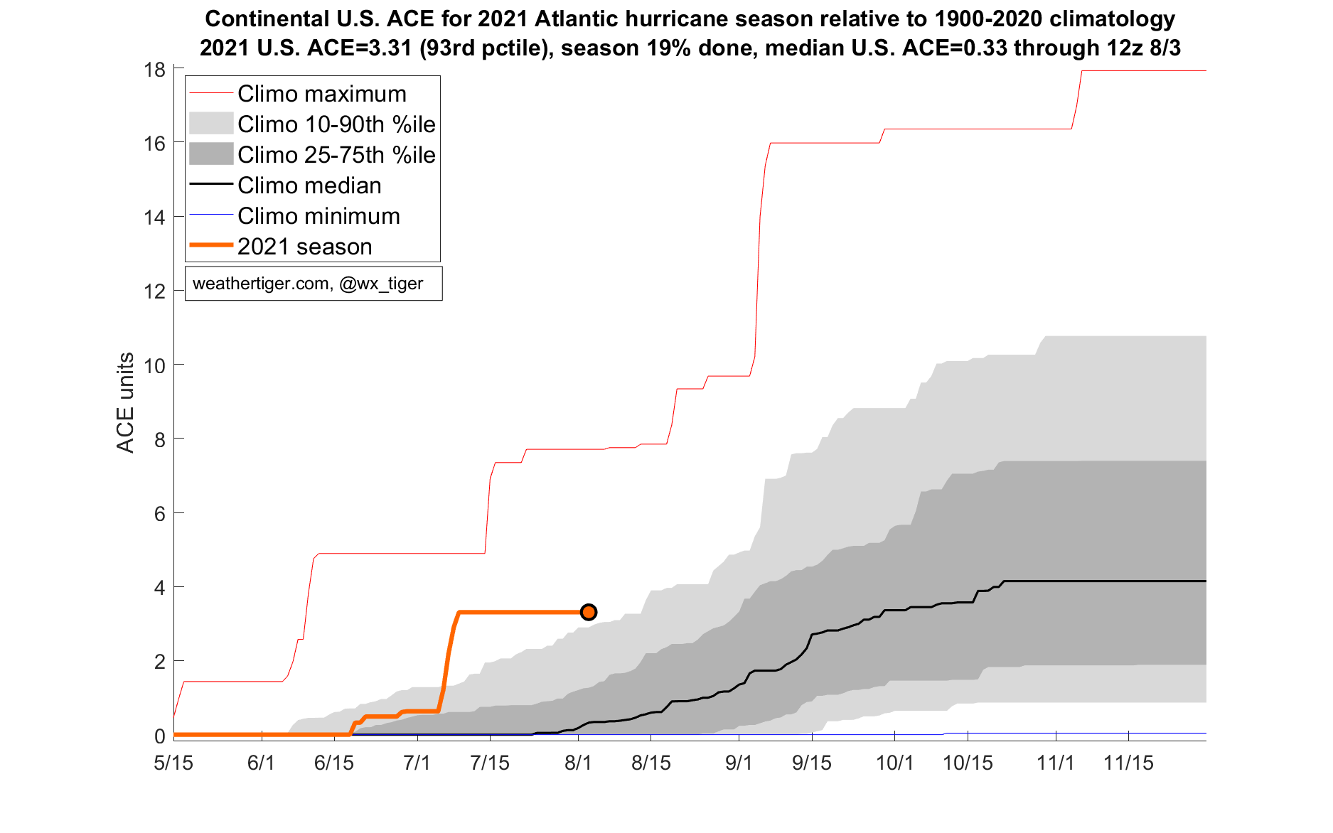 Almanac: Today is Tuesday, August 3rd… day 64 of the 2021 hurricane season, 119 days to go. By total storm energy, the season is 7.5% complete as a whole, 19% complete for the continental U.S., and 13% complete for Florida. This day in 2004, Hurricane Alex passed just a hair offshore the Outer Banks of North Carolina as a Category 2. Not getting to the …