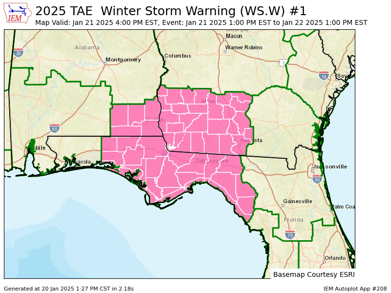 North Florida is little more than 24 hours away from the start of what has the potential to be one of the most impactful winter storms in Gulf Coast history. And while uncertainty about precipitation type in the eastern Panhandle is likely to go right down to the wire, colder trends aloft are tilting the odds away from rain, and towards a messy mix of ice, sleet, and snow Tuesday night into Wednesday morning. Winter Storm Warnings, the first in seven years for Florida, are in effect from Pensacola east to Gainesville and Jacksonville, including Tallahassee.