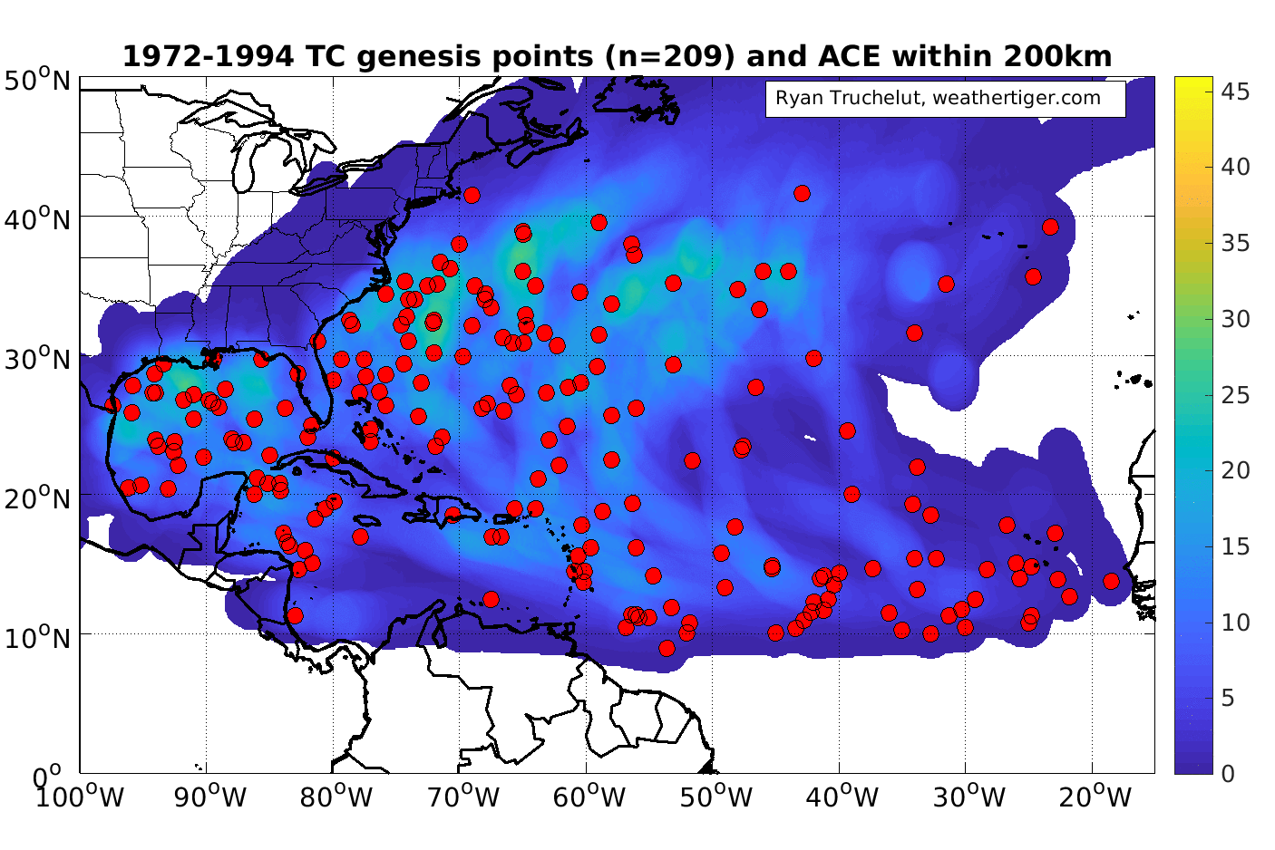 Finally, even correcting for these biases, there probably were a few more shorties to reckon with over the past few decades. Atlantic temperatures were generally cool and hurricane seasons quiet in the 70s and 80s, flipping warmer in the mid-90s; it follows that there would be both more shorties and more intense hurricanes when shifting from a quiet to an active regime. Recent studies have shown a slight global decrease in the total number of tropical cyclones over the last 50 years, with only the Atlantic bucking that trend. This also supports a portion of the change in Atlantic shorties being a real if recent increase.