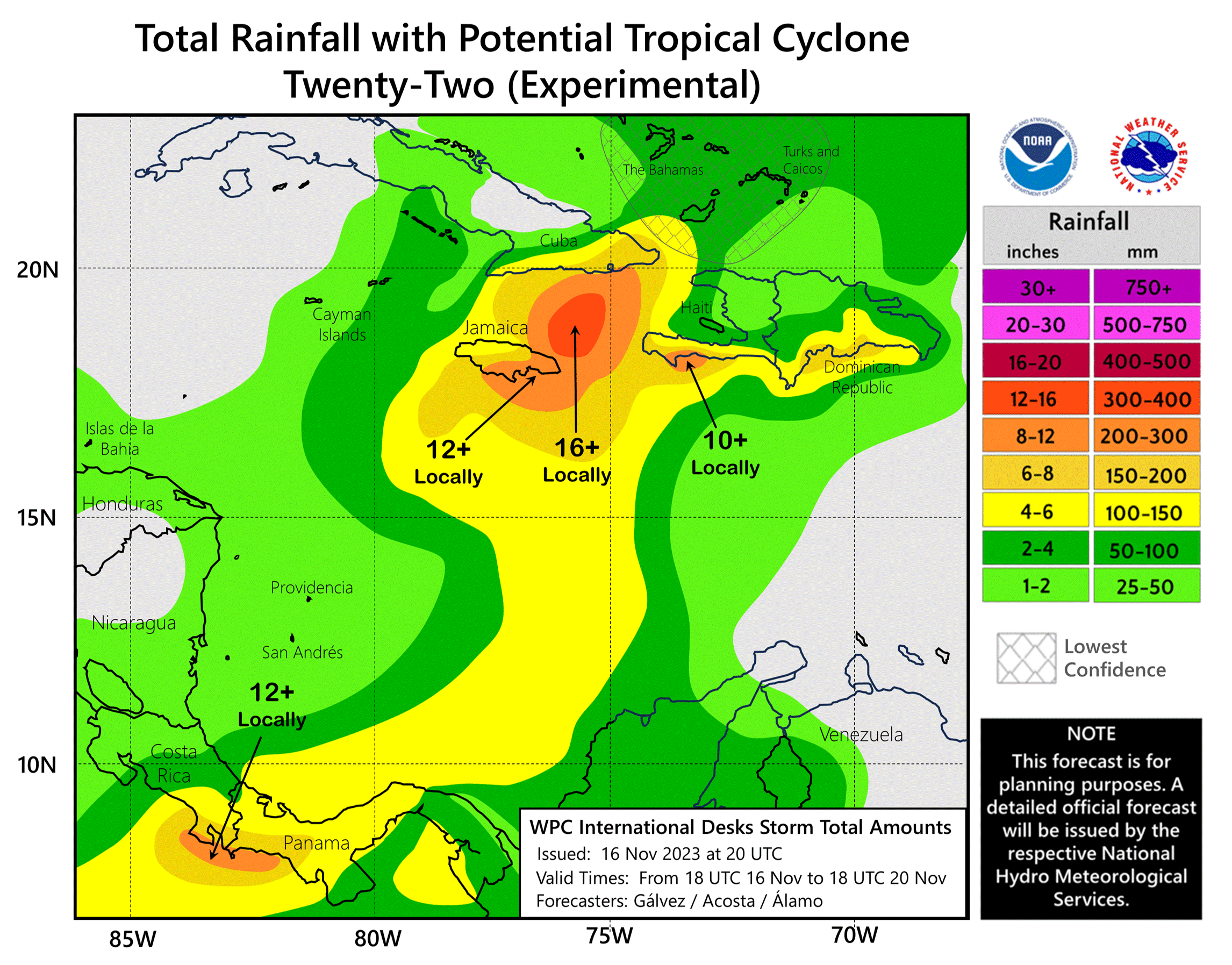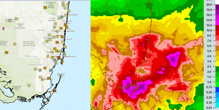 Southeast Florida catches significant rain and wind from a frontal low as Tropical Storm Watches go up for portions of the Greater Antilles due to Potential Tropical Cyclone 22.