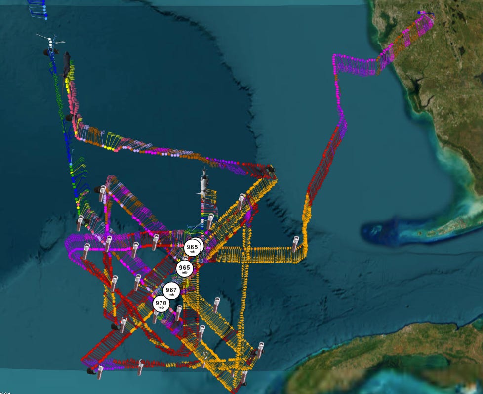 Morning recon data also shows just how large Helene is, as expected. Sustained tropical-storm-force winds extend up to 325 miles to the southeast of the center into the Keys, with sustained hurricane-force winds reaching nearly 60 miles to the east of the center. This is not a change to the forecast, rather a validation of earlier NHC and model forecasts for widespread wind and surge impacts across Florida on Thursday.