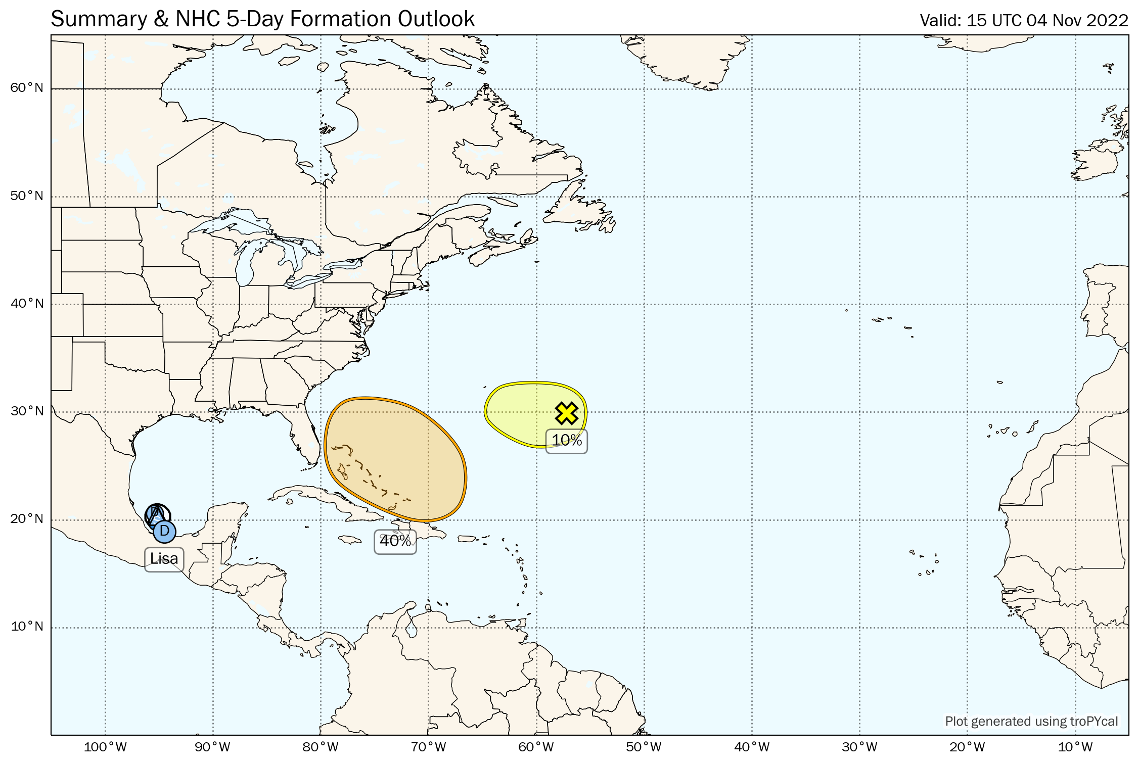 Active Storms: Tropical Depression Lisa has nipped back into the far southern Gulf of Mexico after making landfall as a hurricane in Belize on Wednesday. Lisa will meander for a couple of days, possibly making it back to minimal tropical storm status in the next 12 hours, before being sheared apart and drifting back south over the weekend. No threat to the U.S. from Lisa.