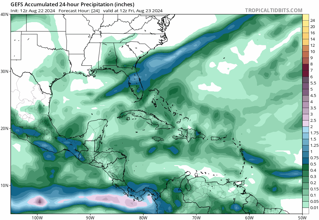 So, let’s talk about the models. In the short term, all numerical guidance is blessedly quiet, indicating no significant tropical threats to the continental United States for the rest of the month. That the Atlantic, Gulf, and Caribbean are devoid of hurricanes in late August is even more surprising than no one having yet made a Killers/Charli XCX mashup called “Mr. Bratside.1” Usually, one to two named storms form in the Atlantic over the next 10 days, so the fact that I’m only drinking one to two LaCroix per day here at WeatherTiger World HQ is a real shock to the system. But we’ll take it.