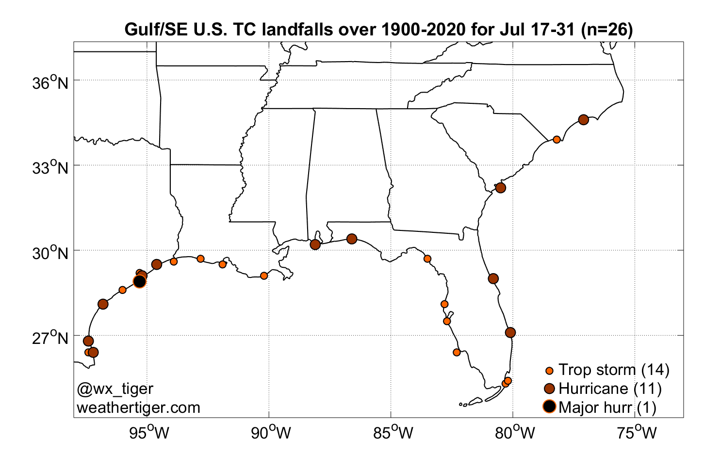 There are no historical tropical storm or hurricane landfalls on this date since 1851, or on July 17th or 18th for that matter— the…