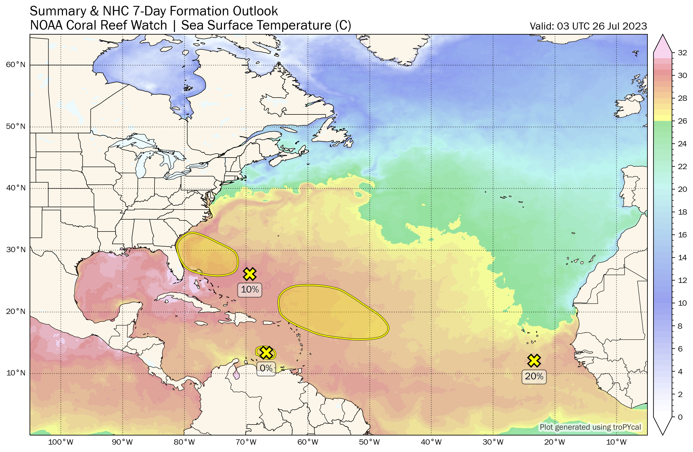 Unfortunately, we’re not out of the woods yet. In next week’s refreshed hurricane season outlook, I’ll discuss how the forecast continues to be a delicate balance, walking a very thin line between unfavorable El Nino and favorable Atlantic conditions. Atlantic sea surface temperatures (SSTs) need to calm down but show no sign of doing so, remaining 2 to 4 degrees above average.