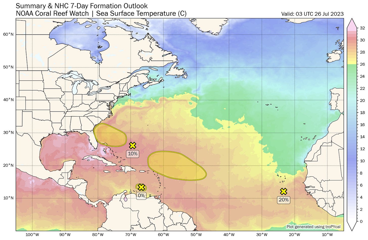 The final disturbance, a tropical wave in the eastern Atlantic, has the best potential for slow development. Long story short, this system will move west-northwest into a region of more favorable upper-level winds, and a tropical storm may form east of the Lesser Antilles by early next week. However, a dwindling, mercurial high in the Western Atlantic entering August means that anything that develops should turn into the salt air of the open Atlantic.