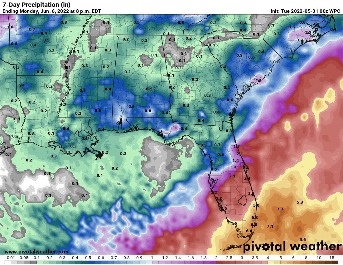 Overall, this is a typically wet early season tropical threat to Florida, and not something of deep concern. We’ll keep you posted on the particulars as the situation becomes clearer later this week.