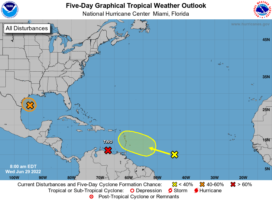 Of the three, the only outside shot of impacting Florida’s weather down the road is a tropical wave a little less than 1,000 miles east of the Lesser Antilles. This wave is generating only modest convection, though it could start to produce more showers and storms as it pushes through the central Lesser Antilles over the weekend, in the direction of Hispaniola.