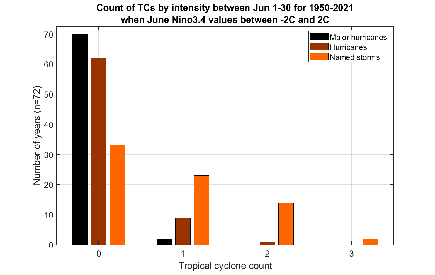 While none of these systems are particularly threatening to the U.S., tracking three disturbances simultaneously in June is way out of line. If both PTC 2 and 95L were to become Bonnie and Colin by the end of Thursday, 2022 would be just the third June since 1950 to produce three named storms. However, unlike a sweaty game of volleyball in jeans, this is not suggestive of anything. June and July tropical activity does not predict how busy the August-October peak months of the hurricane season are: the correlation is literally zero. I’ll take an updated look at our seasonal modeling output in this space next week.