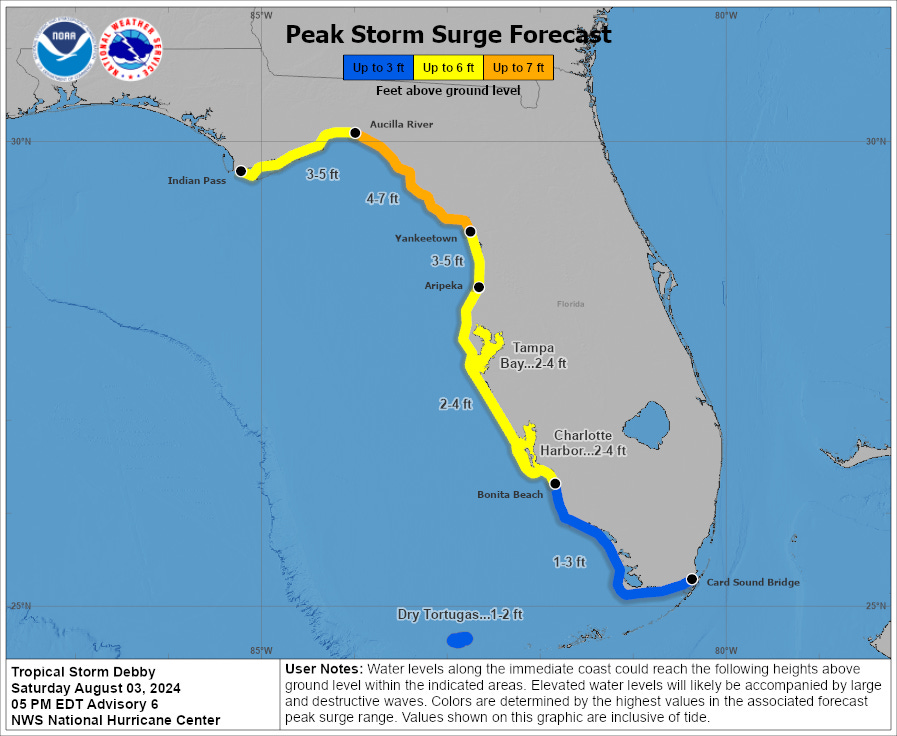 Tropical Storm Debby Florida Impacts Forecast for August 3rd