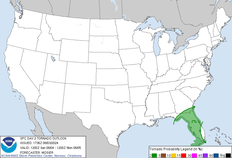 The tornado threat from Debby is not particularly acute. There is potential for some tornadoes over the peninsula and northeast Florida through mid-day Monday, but a major outbreak is unlikely.