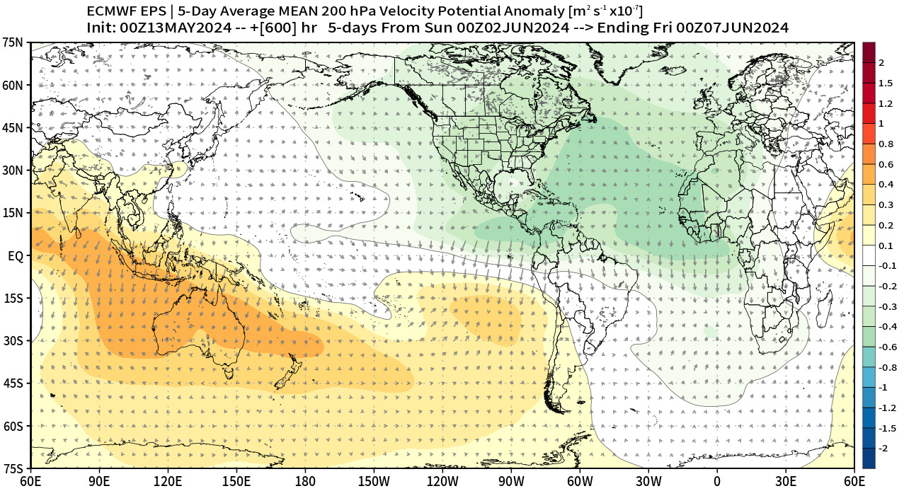 In another three weeks, there is some indication a convection-enhancing upper-atmospheric wave may cross the Gulf and Caribbean. Thus, the first half of June is a realistic timeframe to watch for early season development, especially as named storms are more historically common in June versus May. However, in the short and medium term, there is nothing of concern in the Atlantic Basin.