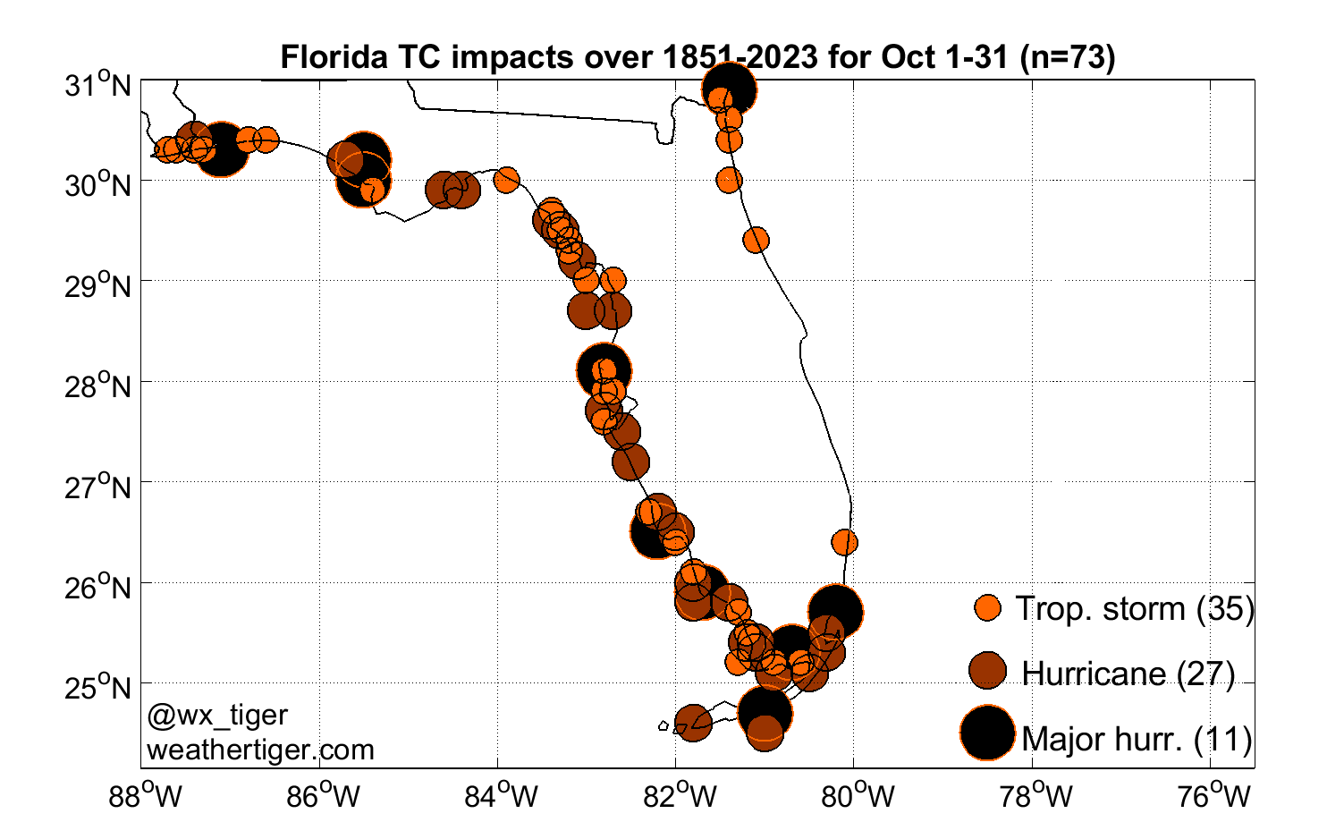 Overall, the possibility of a record-tying fourth Florida hurricane landfall of the year as the honeyed pipes of Mariah Carey already resound from the hard tile floors of our malls just seems wrong. Rare events are rare for a reason, and there is a good chance that land interaction with Central America can tamp down eventual impacts for Florida into the frontal low or tropical storm-like range—mostly rainfall, a possibility of severe thunderstorms. However, that outcome is not guaranteed. The October game of a track all or mostly over water could mean October prizes for Florida in the form of a significant hurricane threat in the middle of next week.