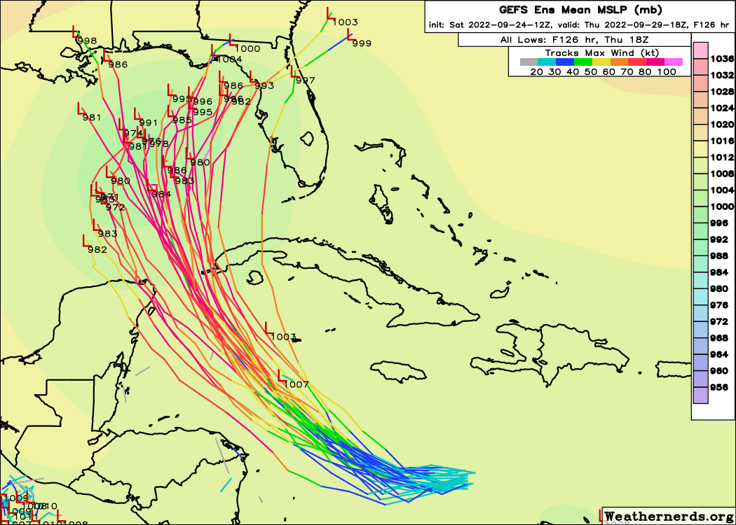 This scenario requires both a stronger trough and a more northward initial track, in which Ian is crossing west-central Cuba on Monday and then races northeast across the Keys and South Florida on Tuesday. The trend is away from this possibility, but it continues to bear mention, as if it occurred Ian would be bringing impacts to urban centers while likely still at elevated intensity. We’ll see if there is any hint of a swing back in this direction, but for now, the threat is diminishing in Southeast Florida.