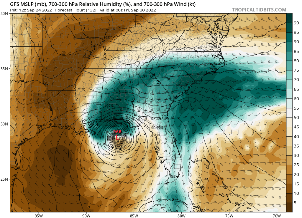 .If there’s any good news to be gleaned this outcome, it’s that dry air and shear should be majorly impinging on an Ian still over the Gulf on early Friday. While this unfavorable environment would probably erode storm structure significantly, impacts, especially in terms of surge and wave action, could still be severe in North Florida with a delayed landfall. And even lower-end winds can have significant impacts in the Panhandle, particularly inland.